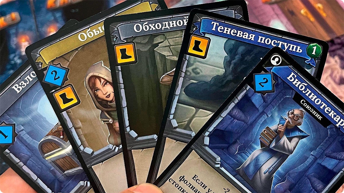 Если кто-то пропустил последние лет 10 в настольном мире, знайте, есть такая игра «Кланк». В ней приключенцы отправляются в подземелье на поиски артефактов, и в этом же подземелье ещё есть жадный дракон. Задача игроков – найти артефакт и благополучно выбраться из подземелья. При этом их периодически «кусает» зубастый дракон, а весь процесс устроен на колодостроительном движке. Мы играем карты, получаем с них ресурсы на покупку новых карт, получаем атаку на атаку карт противников в торговом ряду, а также получаем ещё возможность перемещения, которая, собственно, и нужна, чтобы двигаться по подземелью.