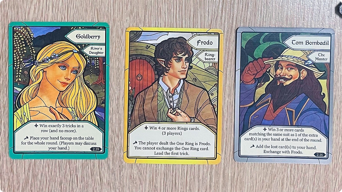 В карточное «Братство кольца» на взятки разыграли ещё две партии, прошли сценарии номер 5 и 6. Ощущения так себе, скорее проходим для галочки. Тут дело в том, что играем на двоих, а в этом режиме ещё добавляется игрок-бот. Так в пятом сценарии к нему прибавляется ещё и второй бот, из-за чего играть за двух ботов… не так уж интересно. А в шестом сценарии одна из ролей – играется полностью с открытой рукой. И получается, считай, опять, как с двумя открытыми ботами. Но оба сценария прошли успешно, с первой попытки. Но, пожалуй, на троих проходить было бы интереснее.