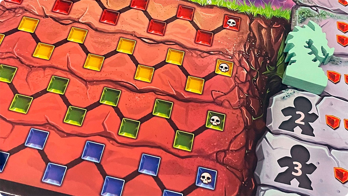 Пока не страшно. Дракон на другом конце подземелья, есть ещё время похватать артефакты. Плюс ещё немного разжиться драгоценными камнями. Вот один, вот второй. На третьем даётся новая вводная – замешать оставшиеся камни в общую колоду. Как будто бы цель сценария почти выполнена. Остаётся схватить второй артефакт и мчать к выходу.