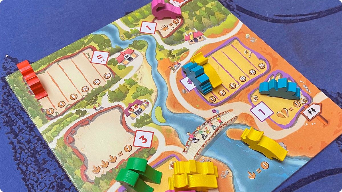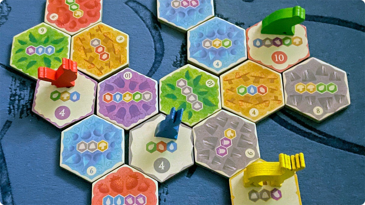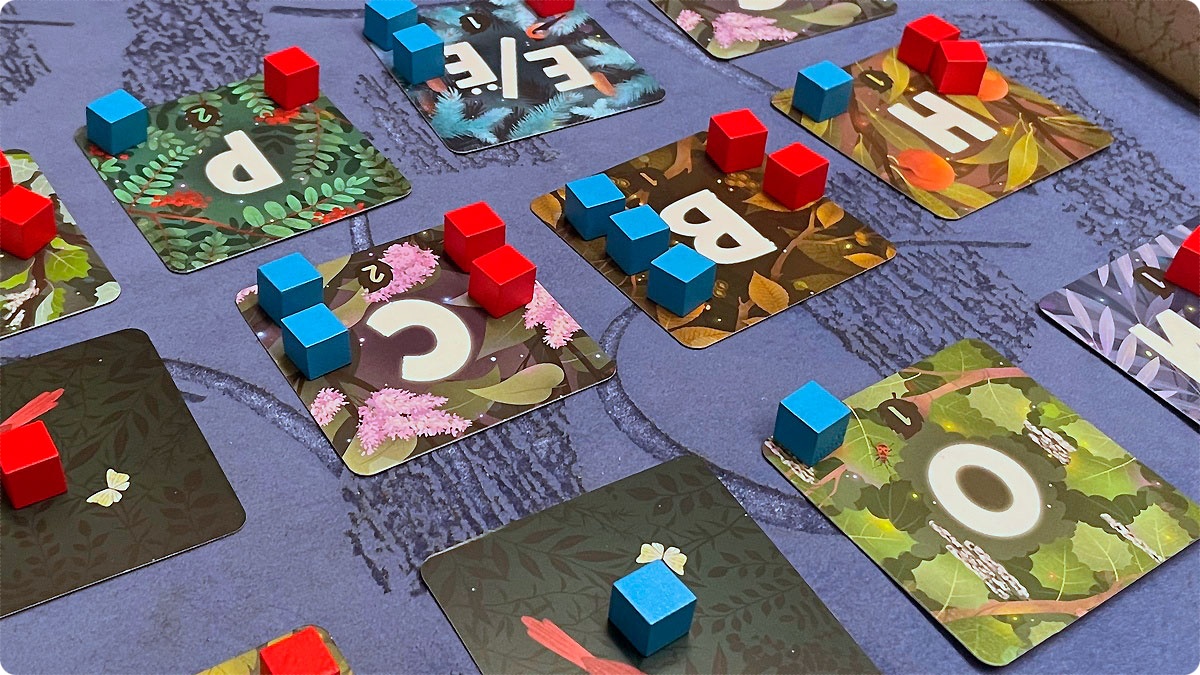 В целом ощущения от игры такие, что как будто разгадываешь головоломку. Вот перед тобой лежат эти жетоны, смотришь на них и прикидываешь, какой фишкой куда ты можешь пойти. И мало того, что надо наметить эти маршруты, надо ещё и продумать их очерёдность, чтобы выполнив одно задание не запороть другое, перевернув жетон леса на обратную сторону. Так что задачка на самом деле комплексная: куда ходить и в каком порядке. Была даже мысль, что надо обзавестись какими-нибудь жетонами или, не знаю, разноцветными кубиками, чтобы они служили как бы маркерами. Вот их расставил по полю со значениями 1, 2, 3 и так далее – это, считай, твой маршрутный план и очерёдность.