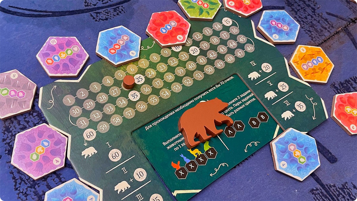 В целом, пожалуй, это самая правильная оценка игры – это просто головоломка. Да, она очень здорово замаскирована красивыми деревянными фигурками и жетонами из толстенного картона, но по факту нет тут никакого леса, есть просто цветные жетончики, которые надо складывать в маршруты. И другие игроки для этого действительно как будто бы не нужны. В такое проще играть одному, думать всё равно приходится точно также, а пауз, которые нужны, чтобы свой ход сделали другие люди, в соло-формате нет.