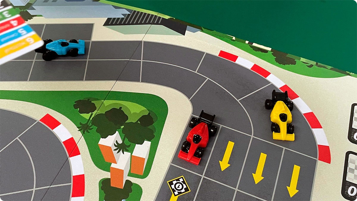 Хочу ещё поделиться хоумрулом для детского режима Формула скорости: использовать все 6 машинок, а карты с восьмёркой раздать взакрытую. Все получают одну машинку, но какую знает только владелец. То есть ты не знаешь какая машинка у соперника, можешь только догадываться, как в черепашьих бегах. А потом в нужный момент игрок открывает свою карту с восьмёркой чтобы рвануть вперёд. Теперь все знают какая у него машина, но зато он может опередить всех. Чтобы не получилось, что тебе не заходят карты для твоей машины, после розыгрыша карты ты новую добираешь с рынка из пяти карт.