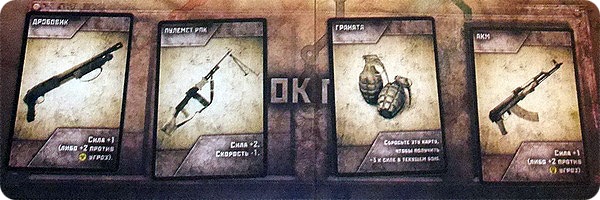 На игровом поле всегда выложены 4 доступные для приобретения карты снаряжения. Находясь на любой станции кольца, герой может приобрести доступное снаряжение. Каждая карта снаряжения стоит 1 патрон и 1 гриб. Если вдруг на продажу ничего хорошего не предлагают, можно заплатить 1 патрон и обновить ассортимент.