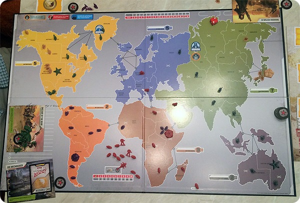 Вторая партия в Risk Legacy получилась у нас одновременно похожей и непохожей на первую. Похожей – потому что все взяли себе ровно те же самые фракции. Более того, даже стартовые территории частично совпали, я, например, снова начинал в Австралии. Непохожесть же заключалась в том, что уже буквально с первого хода начались нешуточные бои.