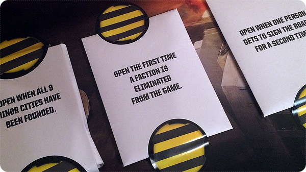 Следующие абзацы посвящены рассказу о содержимом секретного пакета. Дабы не портить себе удовольствие, я предлагаю всем пропустить этот фрагмент текста и закрыть эту страничку, до самого конца отчёта кроме спойлеров больше ничего нет. Если же вы уже играли в Risk Legacy и знаете, что лежит в пакетике с надписью «Вскрыть при первом уничтожении фракции», смело читайте дальше. В любом случае, я предупредил.
