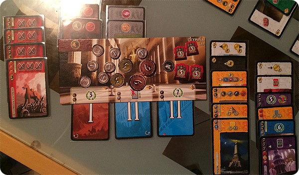 Наконец, я совершенно упустил тот факт, что ни слева, ни справа не оказалось доступного для покупки стекла, из-за чего в III эпохе мне не удалось построить 2-3 очень приятные карты. А обиднее всего было когда уже после подсчёта очков я вспомнил, что за свойство чуда мог построить любую карту в последней колоде бесплатно. В общем, третье место с такой горой ошибок это ещё хороший результат.