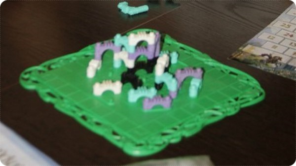 Она незамысловатая. Берёшь в руки деталь, смотришь на конструкцию на поле, да втыкаешь её куда-нибудь, исходя из двух критериев: как бы получить побольше очков, да сделать так, чтобы не подарить следующему игроку результативный ход. Вот и всё.