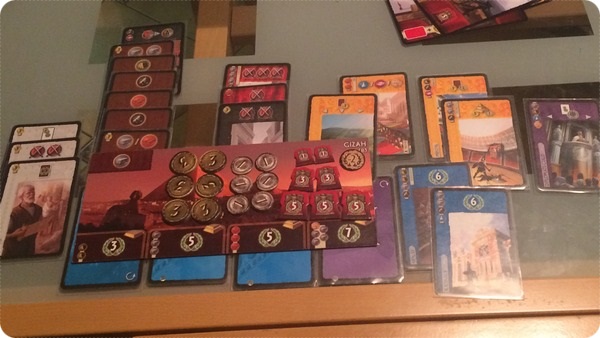 В 7 Wonders произошло редкостное событие, я выиграл! Всегда говорил, что играю примерно по одной и той же схеме: побольше ресурсов, по возможности строю войну и синие карты. А тут как раз удачно выпала Гиза. Пирамидам как раз ресурсы нужны, так что мой типичный путь развития совпал с рекомендованным для конкретного города. Я построил целых 6 коричневых карт, получил за них очки лидером и жёлтой картой из третьей эпохи, набрал немало войны, разбогател за счёт частой продажи ресурсов соседям и в общем зачёте обошёл всех. Целых 86 очков, это теперь мой личный рекорд. Ура!