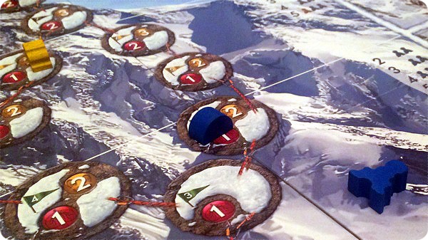 Ничего себе, одна из немногих евроигр, в которой не просто какие-то абстрактные ресурсы превращаются друг в друга, и в не менее абстрактные победные очки, а есть конкретная задача – залезть на гору. Прямая связь с темой! И вдруг – сушняк.