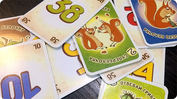 Существенное отличие от Свинтуса тут только одно – карту белки можно сыграть в любой свой ход, в том числе с нарушением правил (не в масть). И есть кто-то не углядит и стукнет по такой неправильной белке рукой, она остаётся в игре. Поэтому за белками тут – глаз да глаз.