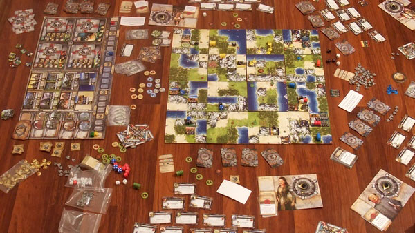 5) Длительность партии находится в разумных пределах. Например, мы свою первую игру на троих закончили где-то за 2 часа. Правда, к этому нужно прибавить ещё 1,5 часа на объяснение правил, но это, всё-таки, разовая акция. В целом два часа на большую игру – это более чем приемлемо. Главное, что партия не затягивается на 4-5 часов, чего я, откровенно признаться, боялся.