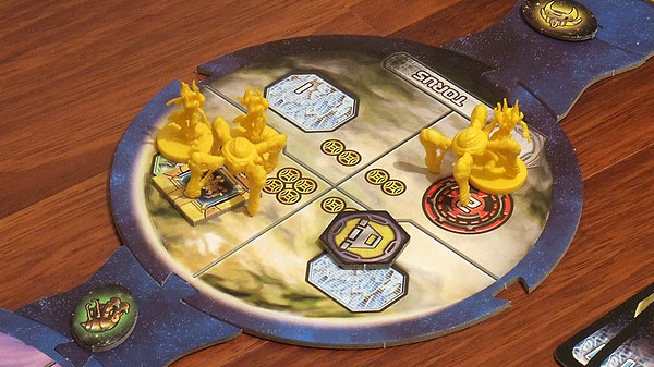 «Перемещение» позволяет передвигать свои войска. Особенность этого приказа в том, что на каждой планете есть от 2 до 4 областей и, выложив на неё приказ «перемещение», вы сами выбираете в какую именно локацию (или локации) идут ваши войска. С помощью этого не приказа можно начать сражение – достаточно передвинуть свои отряды в локацию с юнитами противника. Но слишком много и часто воевать не получится – за один ход игрок может атаковать противника только один раз.