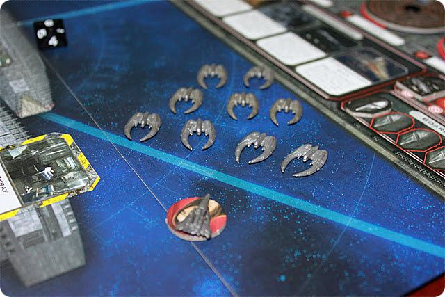 Начало партии было тяжёлым. Из колоды кризисов постоянно выпадали карты сайлонской флотилии и вскоре на поле были оба материнских корабля и все-все сайлонские истребители, неумолимо двигающиеся в сторону практически беззащитных гражданских кораблей. Наши пилоты пытались было противостоять решительному натиску противника, но когда перевес сил достигает 10 к 1, рассчитывать на успех не приходится. К глубокому сожалению экипажа мирные транспорты один за другим беззвучно взрывались в вакууме, уменьшая показатель населения. Лишь потом, когда геноцид уже состоялся, мы догадались, что нужно было всем бежать в коммуникационную рубку и уводить беззащитные корабли прочь от флота сайлонов. Но, как говорится, задним умом мы все крепки. Население тем временем опускается до отметки «2».