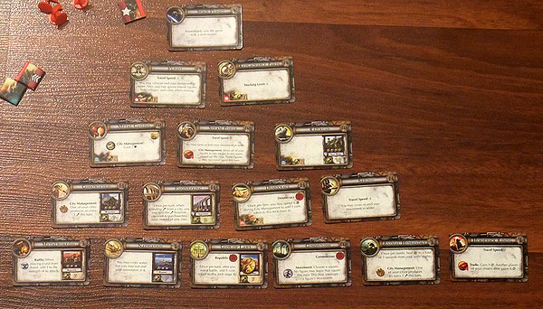 Игра нам по-прежнему нравится. Будем играть в неё ещё. И я подумываю о том, чтобы добавить в игру ещё одно домашнее правило: когда игрок должен получить великого деятеля, он не тянет его наугад, а берёт себе 3 жетона и выбирает одного, понравившегося. А то в игре есть 6 типов великих деятелей и далеко не всегда приходят те, что помогают игроку в его развитии. Вот, например, я, шёл "в культуру", а мне достался полководец, который, совершенно был бесполезен. А я, между прочим, отдал за него целых три ресурса — очень немаленькую цену. Так что посмотрим, вероятно в следующий раз будем играть именно так. Немного приструним рандом.