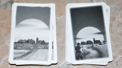 Во-вторых даже если у вас более новая, квадратная коробка, придется терпеть несовпадения. Физически гексы одинаковых размеров. Дальше начинаются различия, разные картинки у гексов, карт, рамок. Плюс рамки не очень подходят друг к другу (приходится прикладывать усилие, от этого портится картон). За карты вообще особый минус мало того что лицо у карт разное, так еще и разные рубашки.