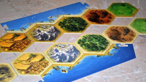 Один из читателей прислал фотографии расширения на 5-6 игроков для Колонизаторов с фотографиями и комментариями, из которых следует, что это расширение не очень хорошо сочетается с российскими изданиями игры: гексы напечатаны немного в других тонах, а на картах вообще рубашки различаются.