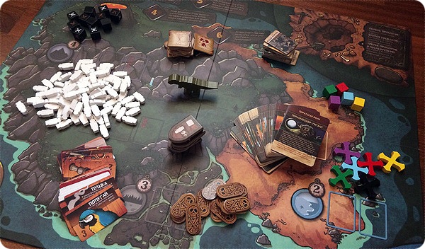 Поиски клада разворачиваются на игровом поле, разбитом на 5 локаций: пляж, равнина, горы, джунгли и болото. Перед началом игры в каждую из этих областей выкладываются в закрытую несколько ориентиров. В ходе партии игроки будут пытаться подсмотреть эти ориентиры в надежде отыскать совпадения со своими фрагментами карты.