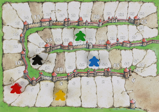 Ещё одно преимущество трека — это экономия на компонентах: вместо целой кучи монет которых нужно заготовить, чтобы всем игрокам хватило на все случаи жизни, достаточно нарисовать дорожку на листе картона и сделать по одной фишке на игрока.