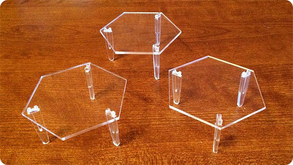 Убираем плёнку с гексов и с "ножек" для них, втыкаем "ноги" в пазы и "этажерки" готовы. Пластик приятный, прозрачный, нарезан бережно, острых краёв нет, брать рукой приятно.