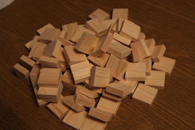 Люблю возиться с деревяшками. Для ускорения можно было бы не шлифовать каждую фишку, а сначала пройтись по рейке наждачной бумагой (дрелью, например). А так, конечно же, прекрасный вариант. Сам хотел этим летом сделать деревянный Квиркл, да руки не дошли.