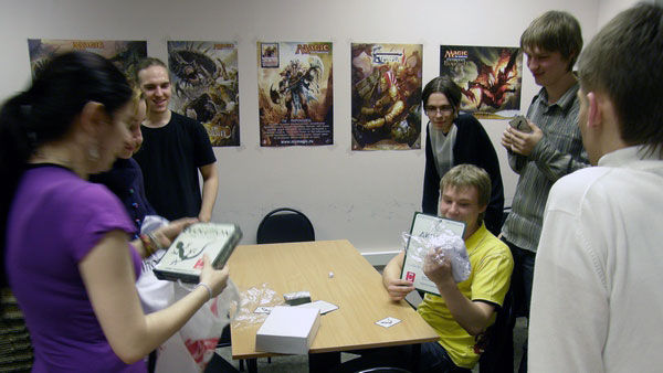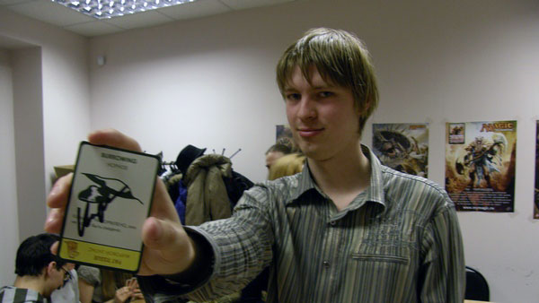 8 участников были случайным образом рассажены за 2 стола, и начался первый тур. Во втором туре участники поменялись столами соответственно количеству набранных очков. Так по итогам 2 партий был определен топ-4 игроков. В него вошли: Буянов Константин, Дубинина Евгения, Козлов Александр и Старов Артём. Все игроки топа получили карты «Эволюции» с автографом создателя игры.