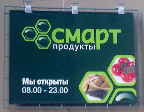 Тов. Зернщик прислал мне парочку фотографий с рекламой настольных игр. Одна из них вынесена в заголовок и, конечно же, не имеет к настолкам никакого отношения, несмотря на знакомое название "Смарт" и не менее знакомые гексы 🙂