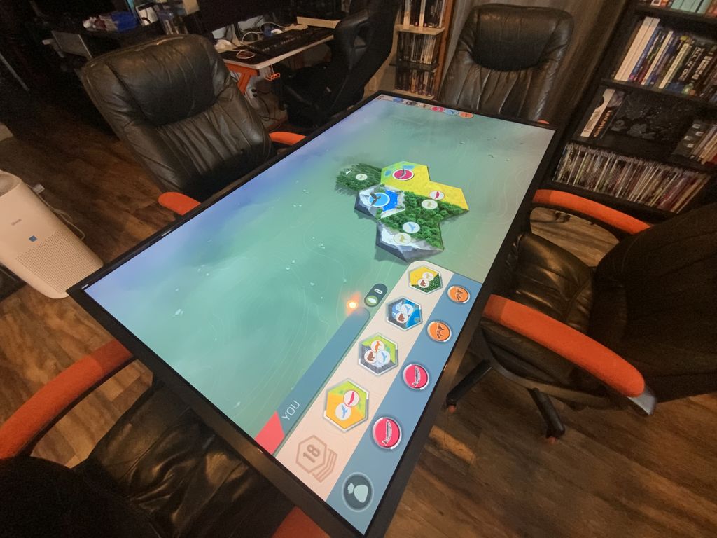 Результат получился более чем впечатляющий. Прямо на столе можно запускать компьютерные версии настолок и играть в походовом режиме, поочерёдно выполняя действия.