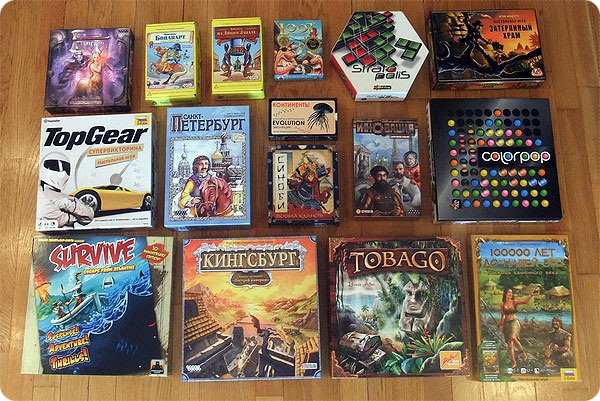 Из Москвы пришлось уезжать с дополнительной большой клетчатой сумкой, почти доверху набитой трофеями. По приезду аккуратно разложил и пересчитал все коробки. Их оказалось ни много, ни мало — 16 штук. Кое во что я уже успел сыграть, в большую часть — ещё нет, но об этом потом. Сейчас — коротко о каждой игре.