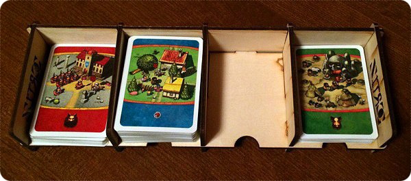 Среди всяких аксессуаров для настольных игр, присланных мне от TM "ORTIZ", была подставка под карты, конструкция с лотками под 4 колоды, которую вы можете наблюдать на фото выше. Я раньше ни с чем подобным не сталкивался, и мне, в принципе, было любопытно, нужна ли реально такая конструкция? Играли, ведь, всю жизнь без каких-либо полочек под карты. Чего тут сложного, раскладываешь колоды по столу, да и всё?