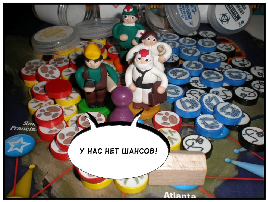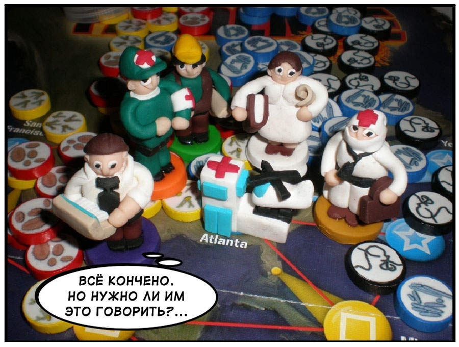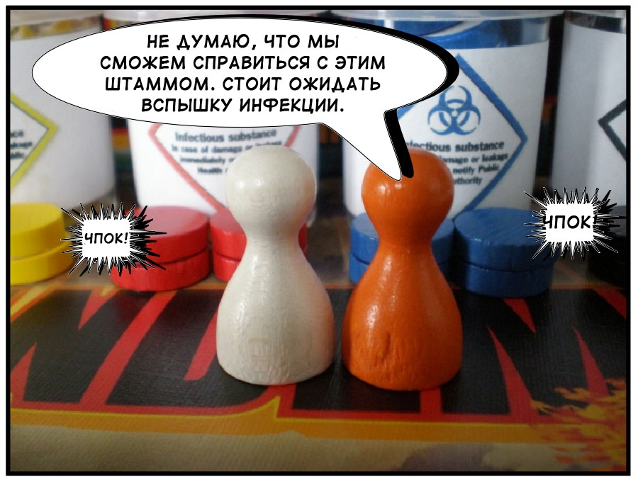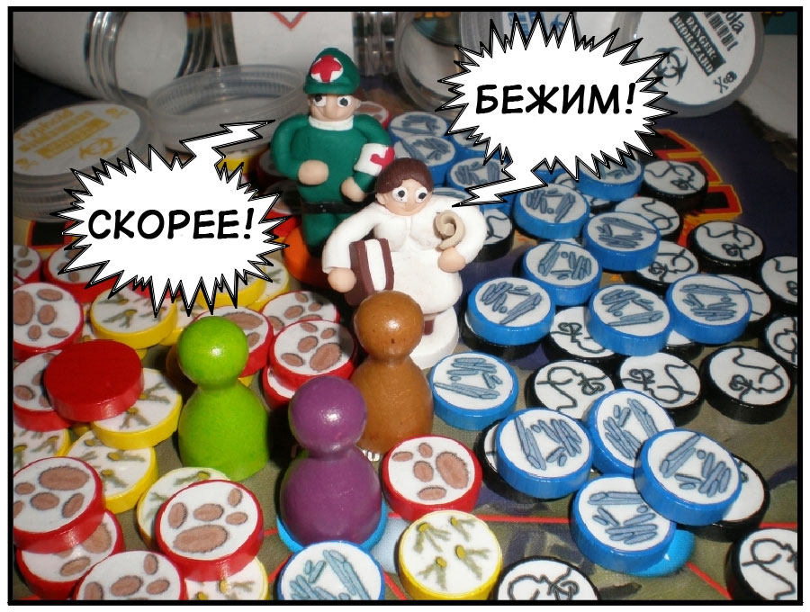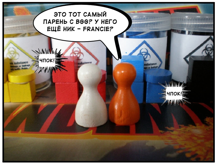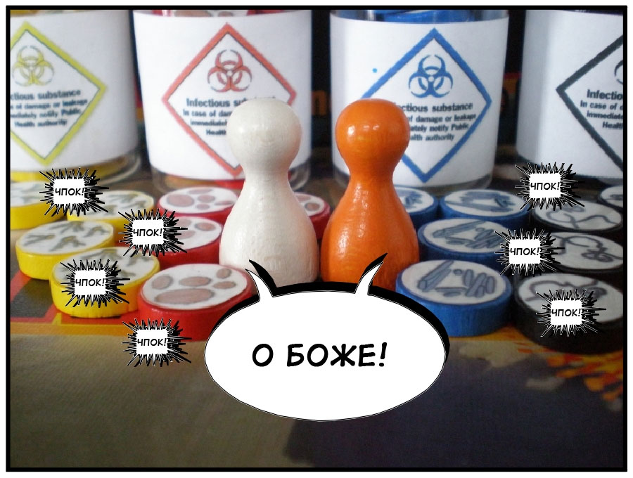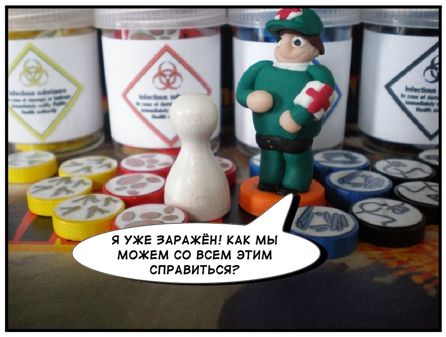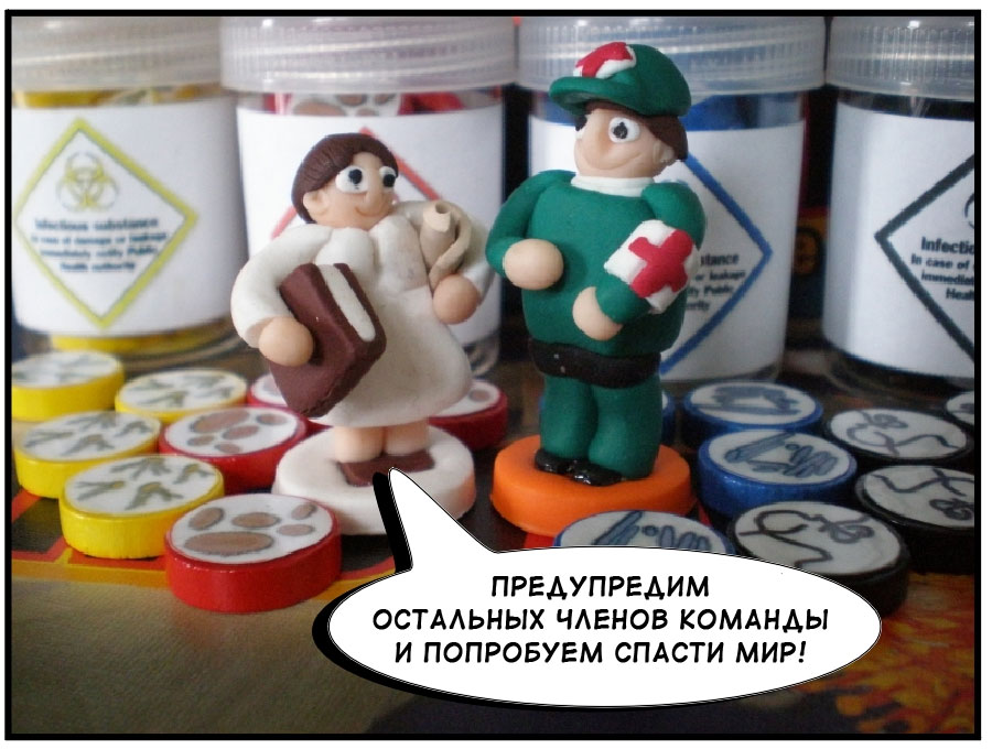 Сегодня в Весёлых картинках комикс по мотивам Пандемии. Оригинал можно увидеть на BGG, а здесь приводится мой вольный перевод истории о том как спасители мира превращаются, превращаются…