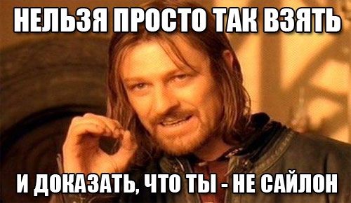 Я бы поспорила с «нельзя просто так взять и доказать, что ты не сайлон» ))