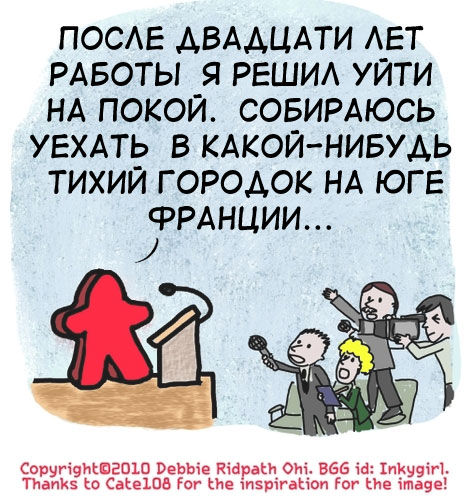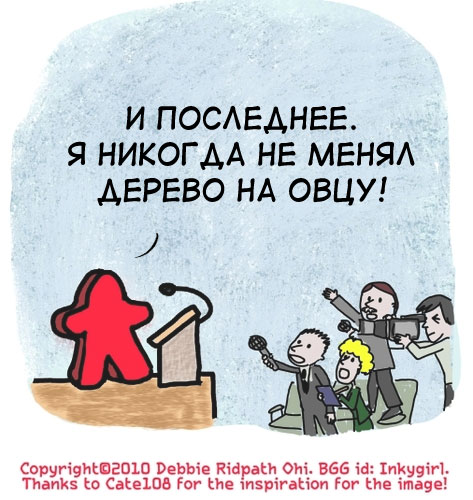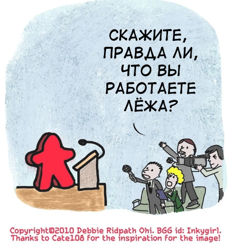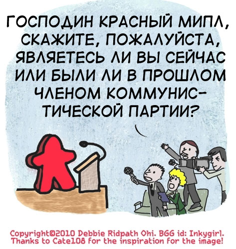 Сегодняшний выпуск Весёлых картинок вновь состоит из одного и того же изображения — "пресс-конференция мипла" — с различными вариантами реплик и комментариев. Оригинальную версия картинки и варианты подписей можно посмотреть на BGG.
