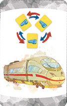 Наконец, среди вагонов изредка встречаются карты действия (сверху слева – одна из таких карт). Они позволяют манипулировать выложенными картами, перекладывать их от вокзала к вокзалу, менять местами с картами в руке и т.п.