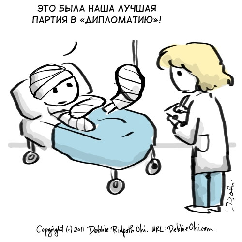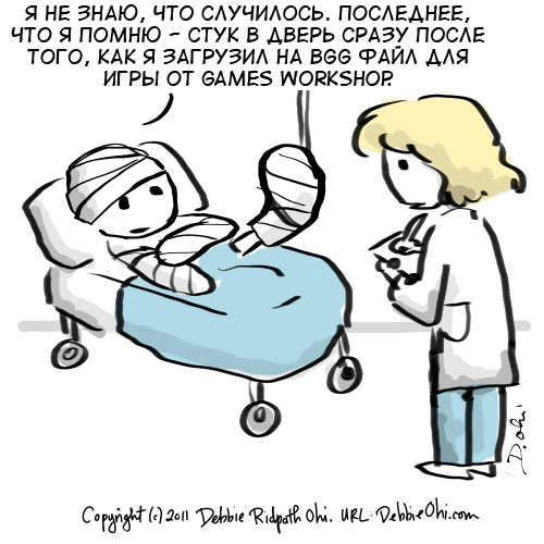 В этом выпуске Весёлых картинок снова будет только одно изображение с BGG. Но зато с разными репликами персонажей. На оригинал посмотреть можно здесь.