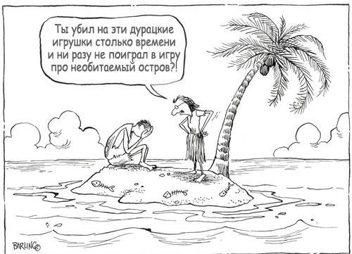 Предлагаю вашему вниманию небольшую порцию каррикатур от Брайана Барлинга. Они не такие смешные, как в прошлый раз, но, тем не менее, я нахожу их забавными. Как и раньше, я перевёл весь текст на русский язык, причём допустил несколько вольностей. В некоторых местах перевод вовсе не буквальный, и сделано это сознательно 🙂