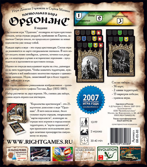 Набор для 2-х игроков, состоящий из 77 карт (базовый набор и дополнение Королевства крестоносцев)