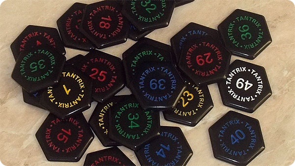 На оборотной стороне фишек имеются разноцветные числовые обозначения. Зачем они нужны — пока не знаю. Возможно задействуются в одной из вариаций Тантрикса.