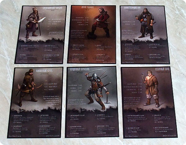 Особо выделяются шесть карт увеличенного размера. Это карточки персонажей, героев настольного приключения.