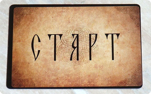 Отдельно в коробке лежит карта стандартного размера с надписью "Старт", хотя из-за выбранного шрифта на первый взгляд читается как "Стярт".