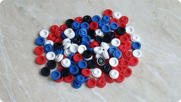 Пластиковые фишки в игре бывают четырёх цветов: белые, красные, синие и чёрные. Они удобные и вполне функциональны. Намного лучше, например, пластиковых "кружков" еды в новом издании Эволюции.