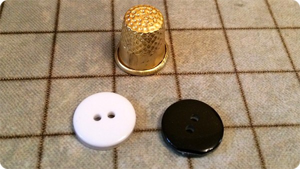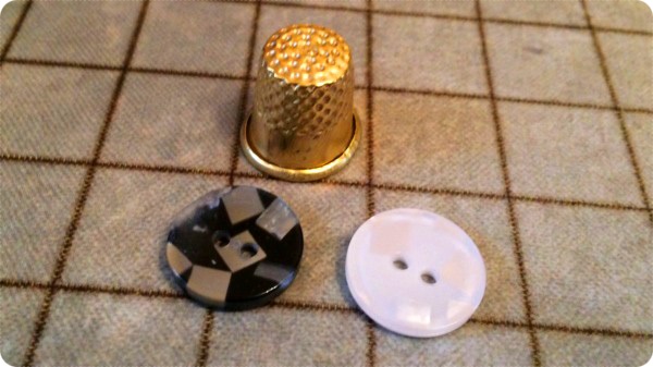 Не все компоненты тут картонные! Внутри обнаруживаются две пуговицы, чёрная и белая, а также напёрсток золотистого цвета.