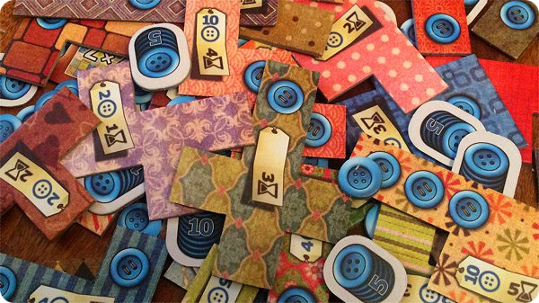 Открываю коробку, достаю правила и вижу довольно много картонных листов. В них отпечатаны два вида составляющих: те самые фигуры a-la "тетрис", а таже круглые жетоны пуговиц плюс жетоны пуговиц номиналом 5, 10 и 20 единиц.