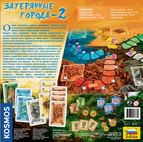 В 2008-м, на западе вышла игра Lost Cities: The Boardgame, альтернативный вариант карточных Затерянных городов с полем и фишками. И возможностью сыграть вчетвером. А теперь, эта игра добралась и до нашей страны. Как и карточный вариант Затерянных городов, Lost Cities: The Boardgame локализует компания Звезда. И новинка, получившая в России название Затерянные города — 2, уже отправилась в печать и вскоре должна поступить в продажу.