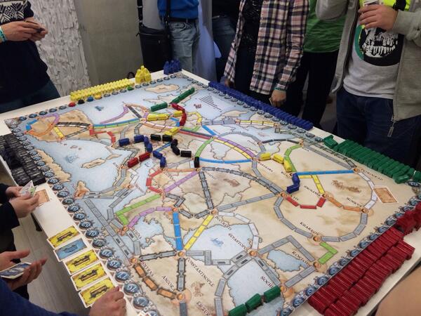 Помимо просто игровых зон на фестивале то тут, то там попадались крупные и гигантские экземпляры настольных игр. Так, на втором этаже были укрупненные Ticket to Ride: Европа и Крагморта.