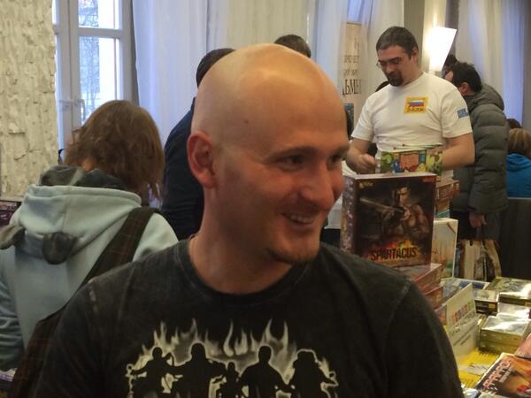 Были также Иван Туловский и Сергей Мачин (Правильные игры), Петр Тюленев (автор игры Поселенцы), которому я помогаю переводить на русский язык Робинзона Крузо, Ирина Михальцова (сотрудник Игроведа и постоянный читатель BoardGamer.ru). Ну и конечно же самый плодовитый отечественный автор — Николай Пегасов, являющийся также одним из ключевых сотрудников Мира Хобби. После перерыва на обед подошли также Максим Трофименко (соавтор Знаменосца и Братства Девяти, сетевой автор, известный также как Mazz_O) и Александр Булгаков, главный редактор Тесеры, крупнейшего настольного портала в России.