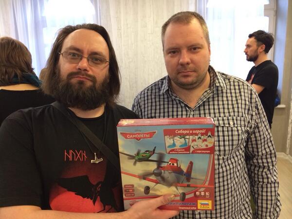 Пожалуй, для человека в теме это была одна из самых важных точек притяжения фестиваля. По крайней мере именно тут можно было увидеть больше всего знакомых лиц. В первую очередь это Юрий Ямщиков, Юрий Журавлев, Влад Чопоров. Тут же регулярно появлялся Герман Тихомиров, заходили Иван Туловский и Сергей Мачин. Да что говорить, я сам провел там суммарно час-полтора и даже успел поработать "выдавателем наклеек", вклеивая их в буклеты посетителей, заходивших в уголок к разработчикам.