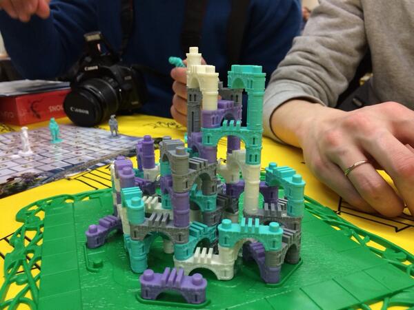В "Замке" игроки сообща строят замок, выставляя на поле по очереди пластиковые перекрытия. Из них постепенно вырастают башни, на поле появляются все новые и новые фрагменты замка, а игроки зарабатывают за это очки. Тут поощряется размещение своих фигур таким образом, чтобы под перекрытием было как можно меньше пустого места, т.е. чтобы твоя арка была как можно выше.