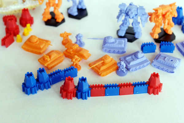 Строительные фишки (башни и стены) сцепляются между собой в разных вариациях.